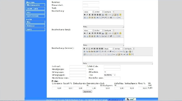 BeschreibungMit der Materialverwaltung haben Sie immer den Überblick über Ihre Materialien, die Sie verkaufen oder erzeugen. Sie können Die Materialien einfach und komfortabel bearbeiten. Voraussetzungen: